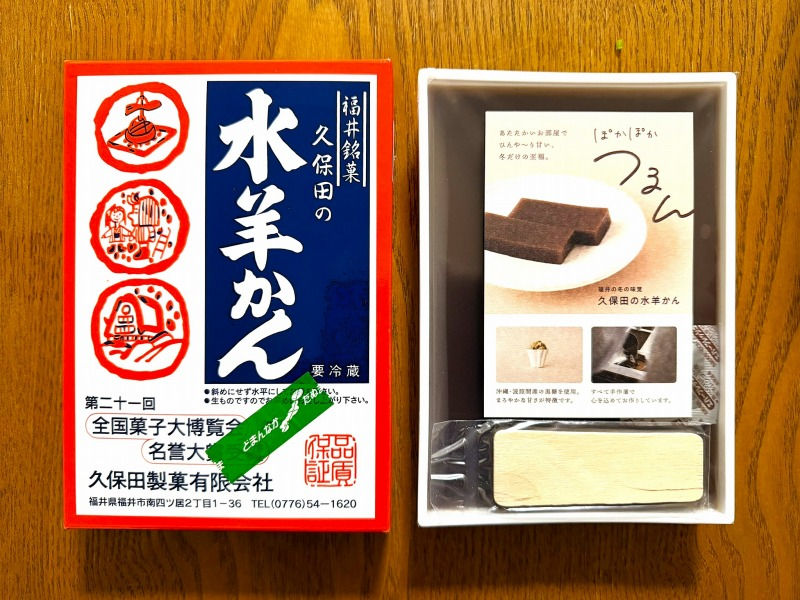こういう時は直球勝負です。水ようかんの箱に記載されている久保田製菓有限会社の連絡先に電話すると、感じの良い女性の方が親切に対応してくださいました。